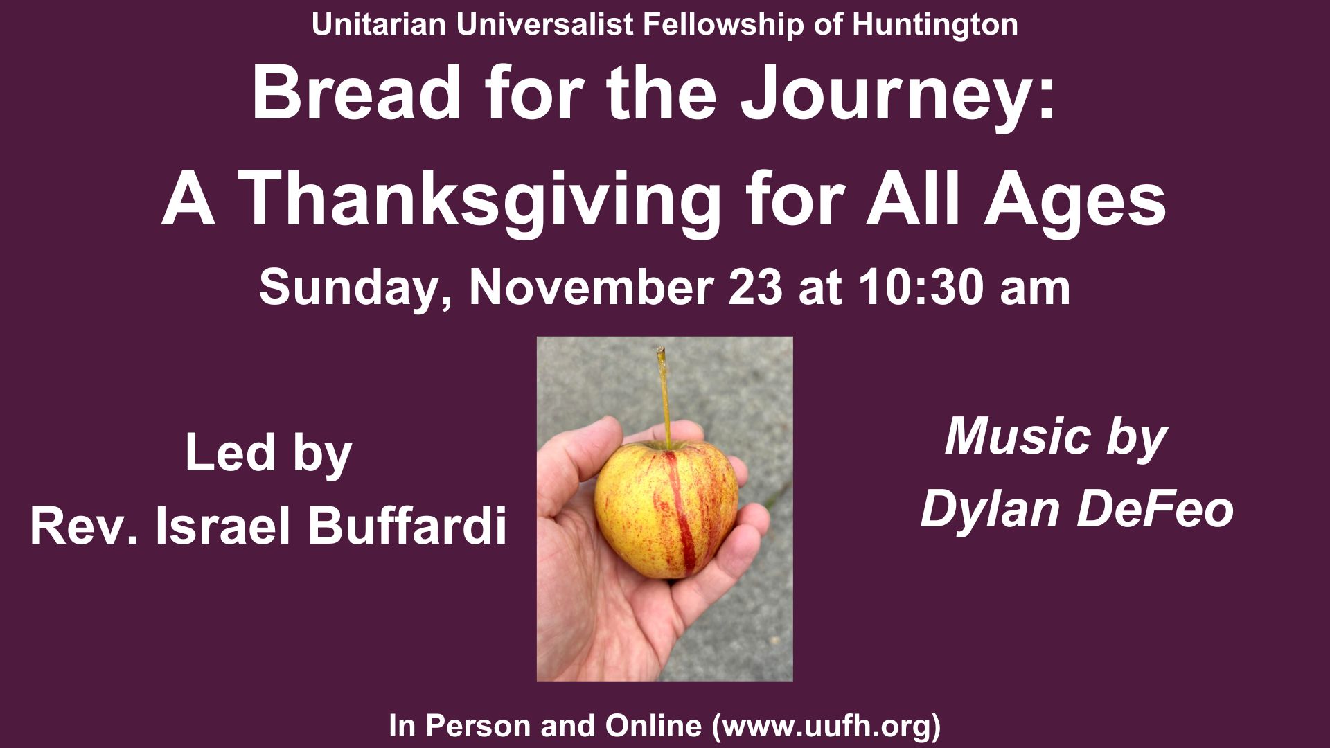 Bring bread—or anything like it—for this joyful, intergenerational celebration of gratitude and belonging. Through story, music, and shared ritual we’ll give thanks for the gifts that sustain us and recommit to being a people of shared abundance.